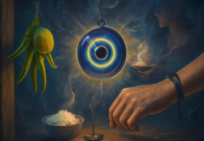 आपण अनेकदा घरात काही सकारात्मक, आनंददायी सांगतो तेव्हा घरात वडीलधाऱ्या लोकांच्या तोंडातून पहिले येते ते म्हणजे, ‘आधी दृष्ट काढते थांब’. दृष्ट काढणे, नजर काढणे आपल्या देशात खूपच सामान्य मानले जाते. लहान बाळांची तर रोजच दृष्ट काढली जाते. त्याला कोणाची वाईट नजर लागू नये म्हणून काळा टीका देखील लावला जातो. लहान बाळच नाही तर आजकाल मोठे लोकं देखील नजर लागू नये म्हणून पायात काळा डोरा बांधताना दिसतात. मात्र नजर किंवा दृष्ट लागणे असते तरी काय?, नजरेसाठी वापरण्यात येणाऱ्या एव्हिल आय या प्रतीकाचा इतिहास काय आहे? जाणून घेऊया या आणि अशा अनेक प्रश्नांची उत्तरं (Nazar)
